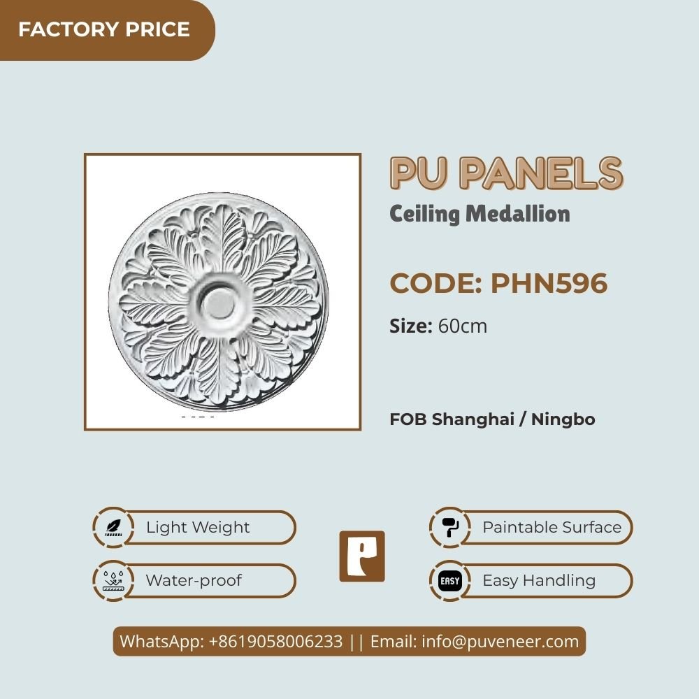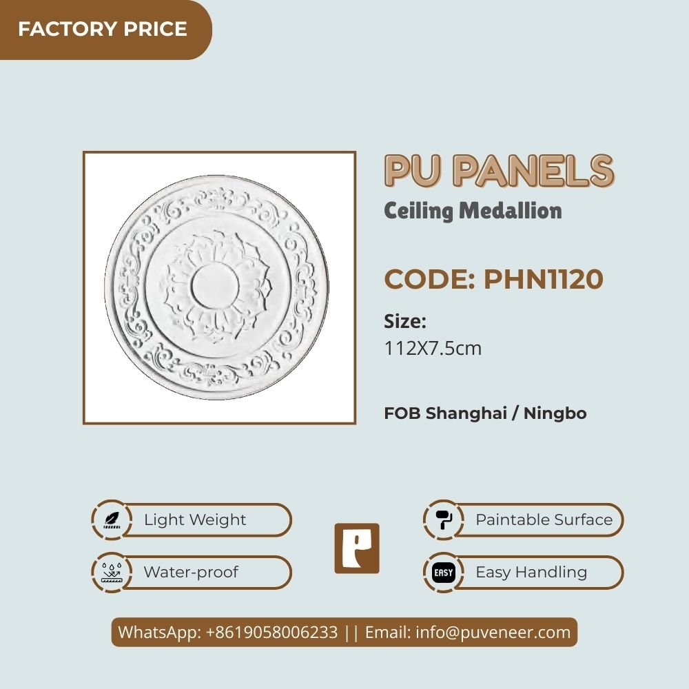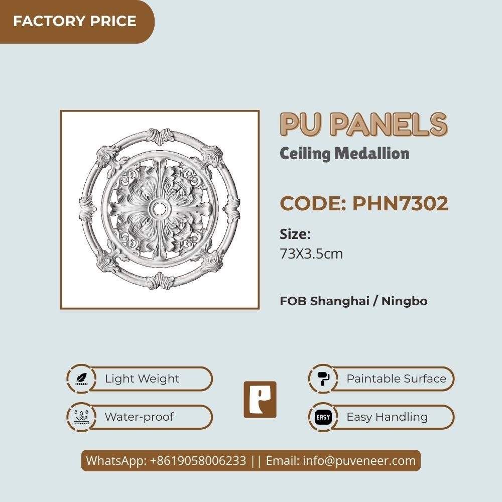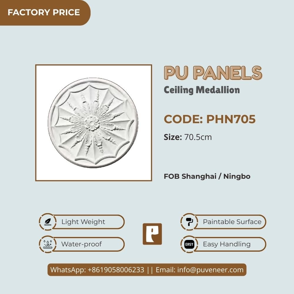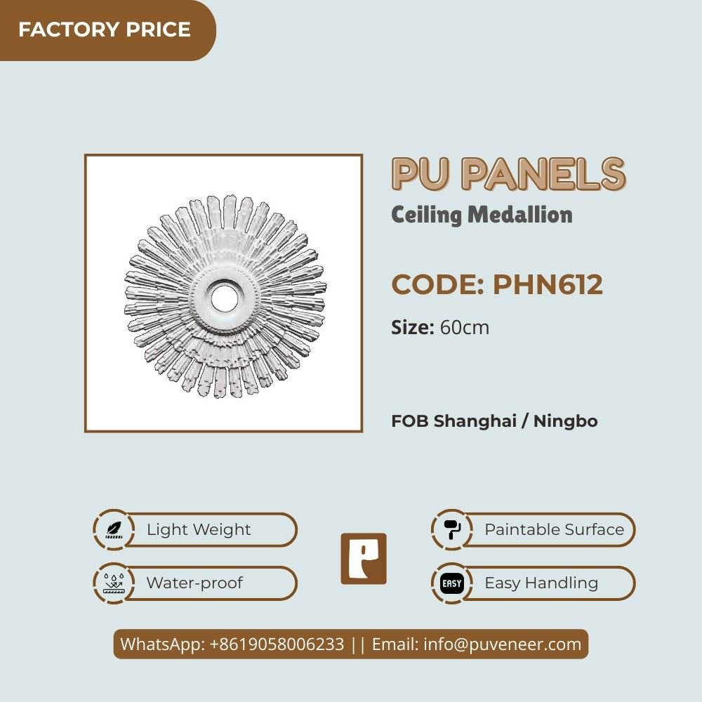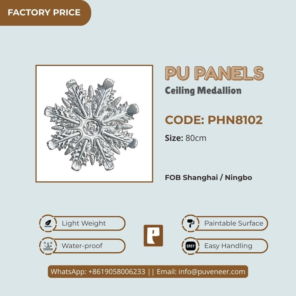 Make your ceiling stand out with our PU Ceiling Medallion. It's made from high-quality polyurethane, which is lightweight but strong. This material offers sharp details and a nice finish without the heaviness of traditional plaster. It resists moisture so that it won't crack or warp over time. Plus, it's easy to install without needing special tools or extra help. Choose this modern design to effortlessly add character to your space.