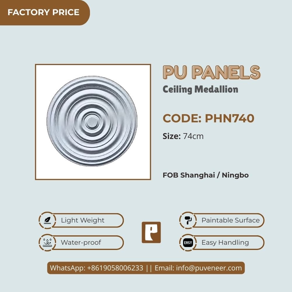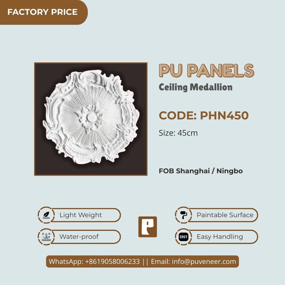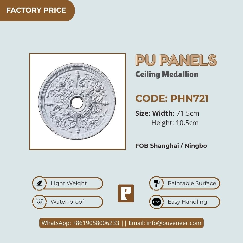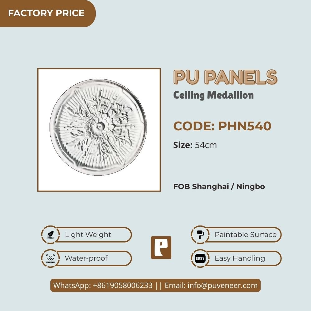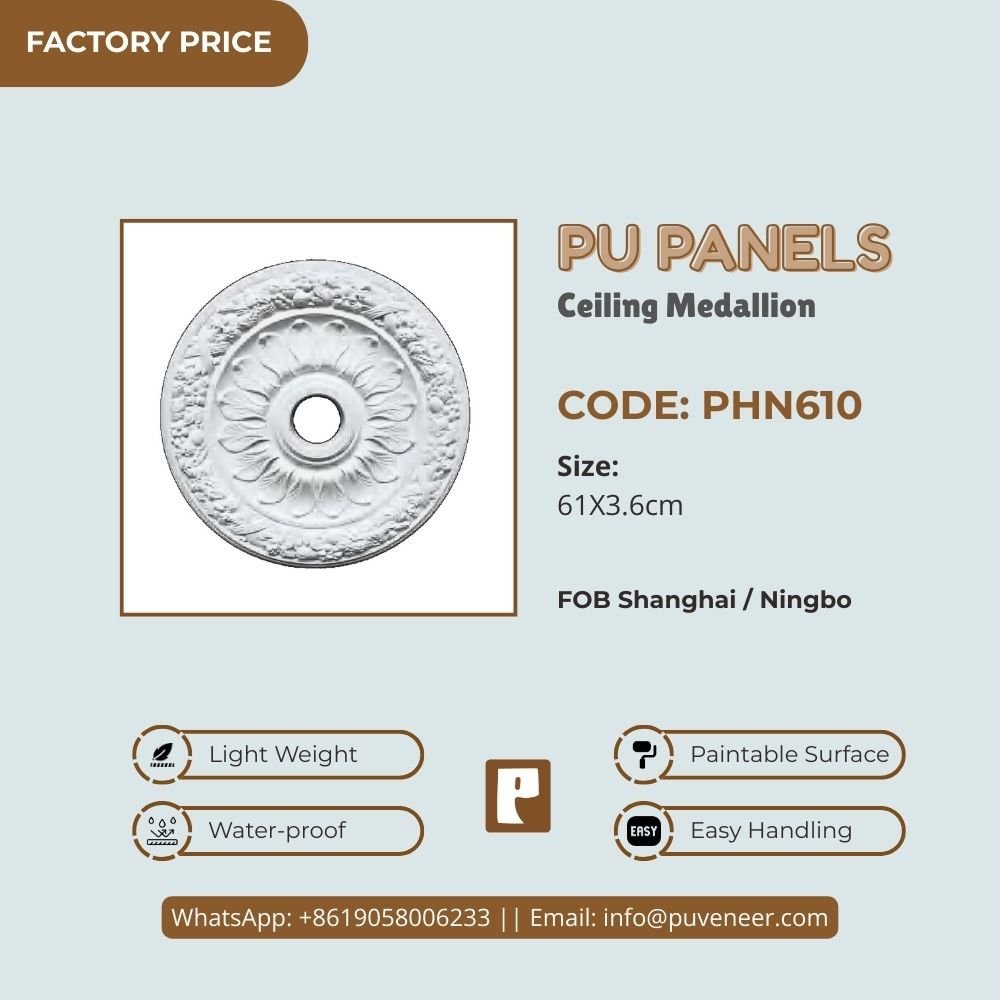Make your ceiling stand out with our PU Ceiling Medallion. It's made from high-quality polyurethane, which is lightweight but strong. This material offers sharp details and a nice finish without the heaviness of traditional plaster. It resists moisture so that it won't crack or warp over time. Plus, it's easy to install without needing special tools or extra help. Choose this modern design to effortlessly add character to your space.