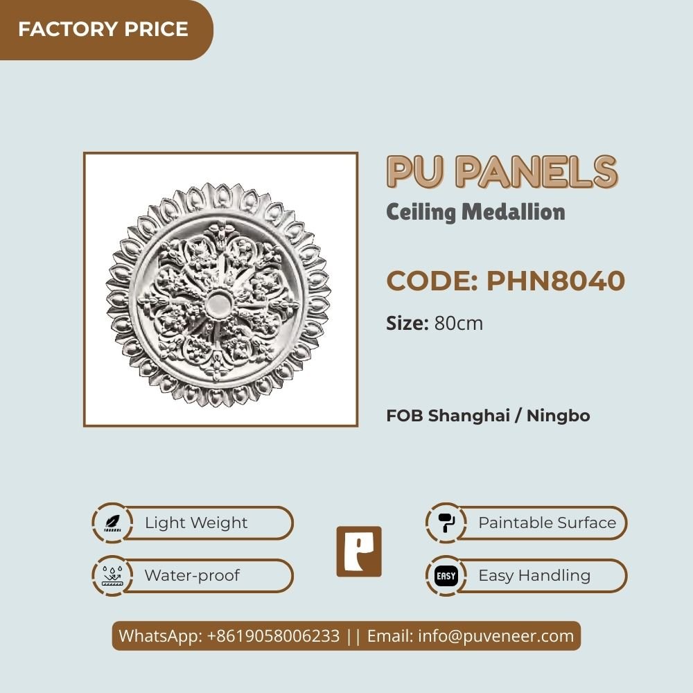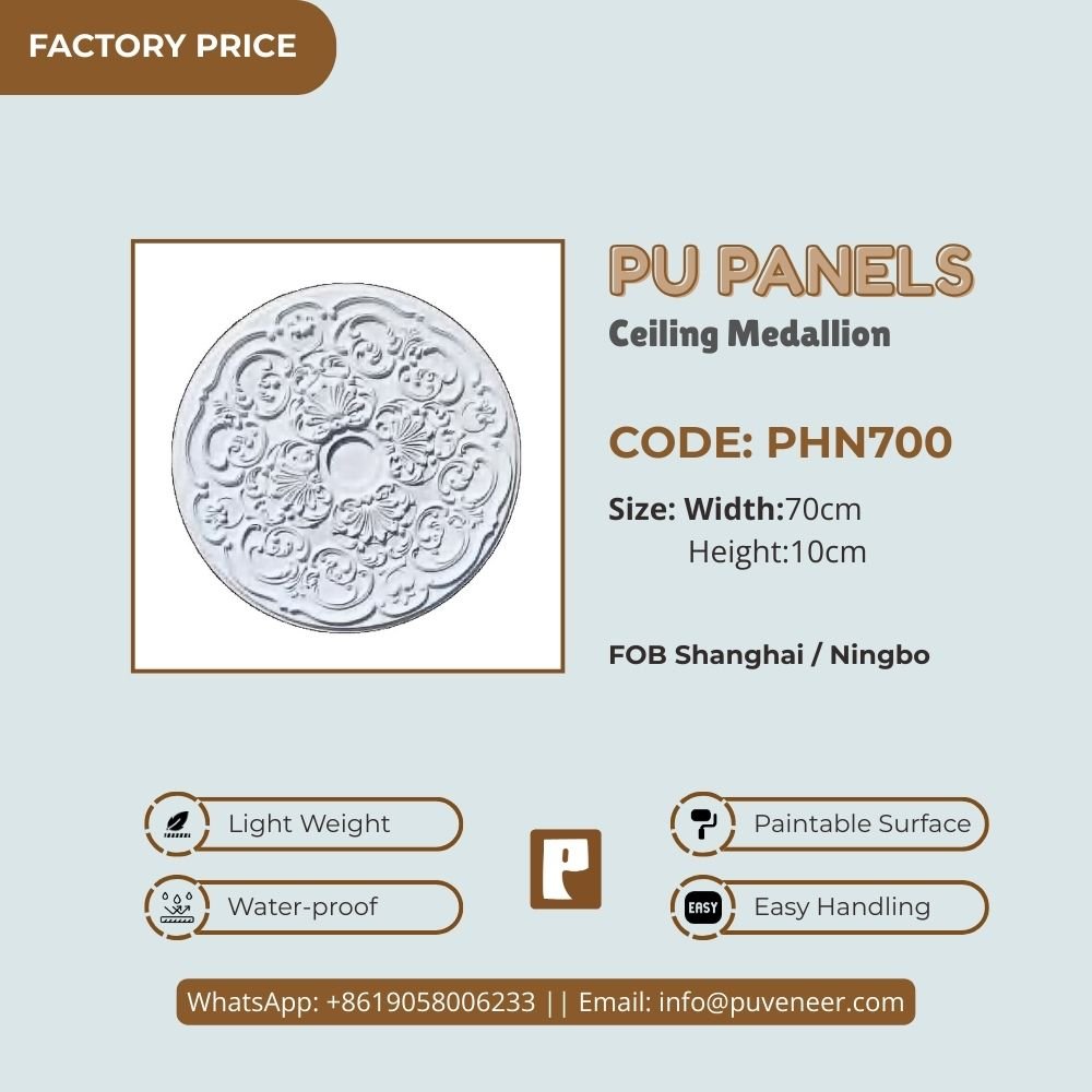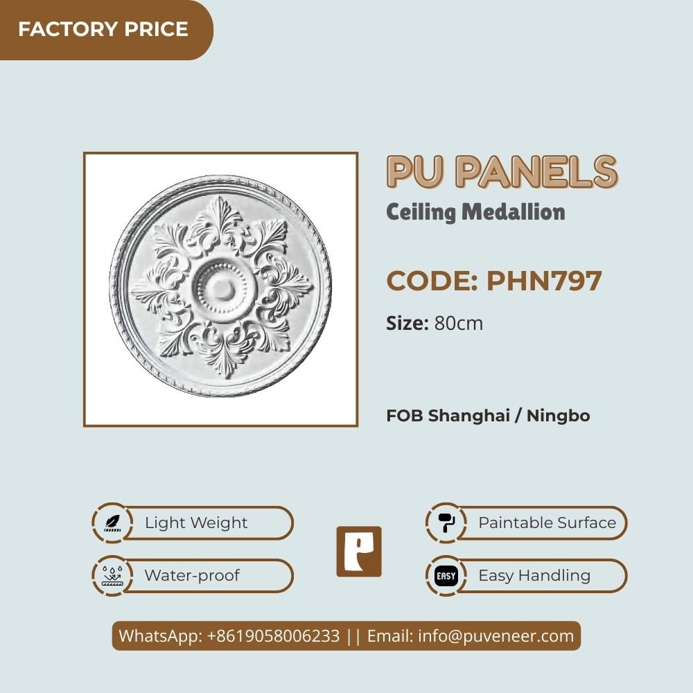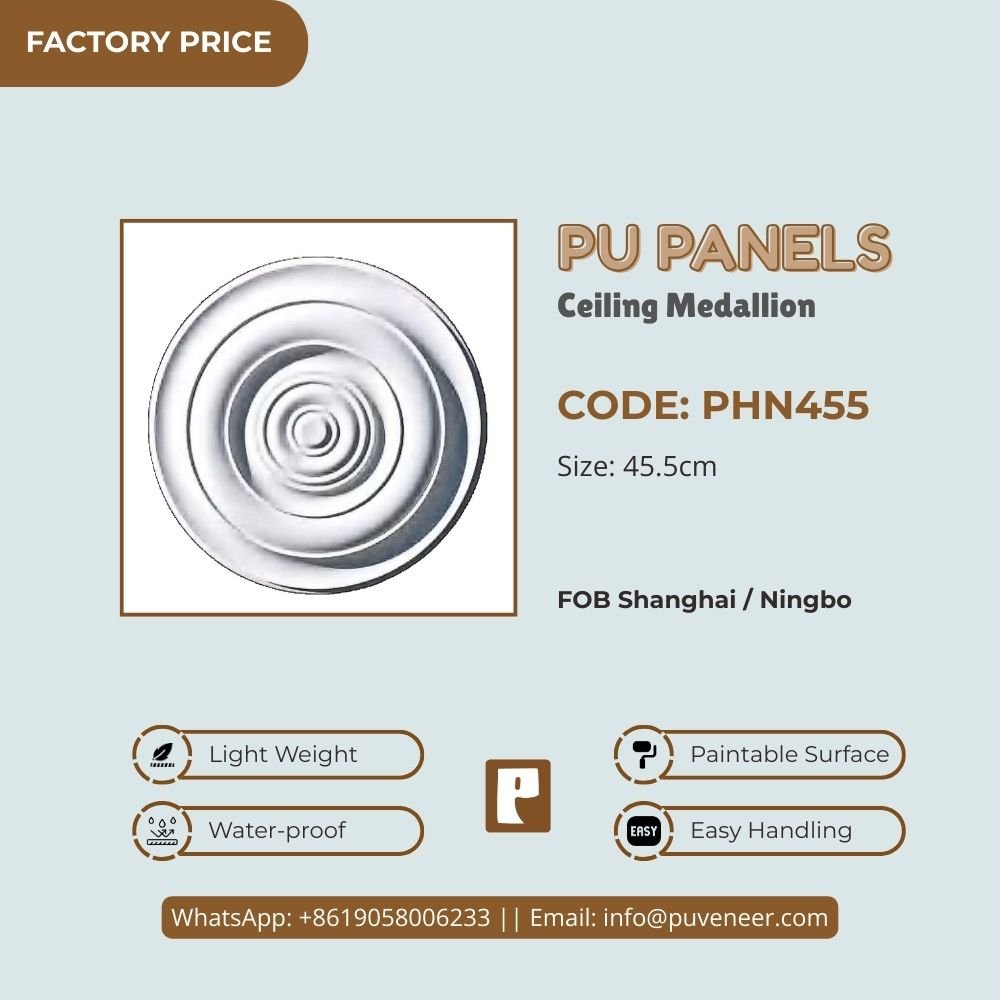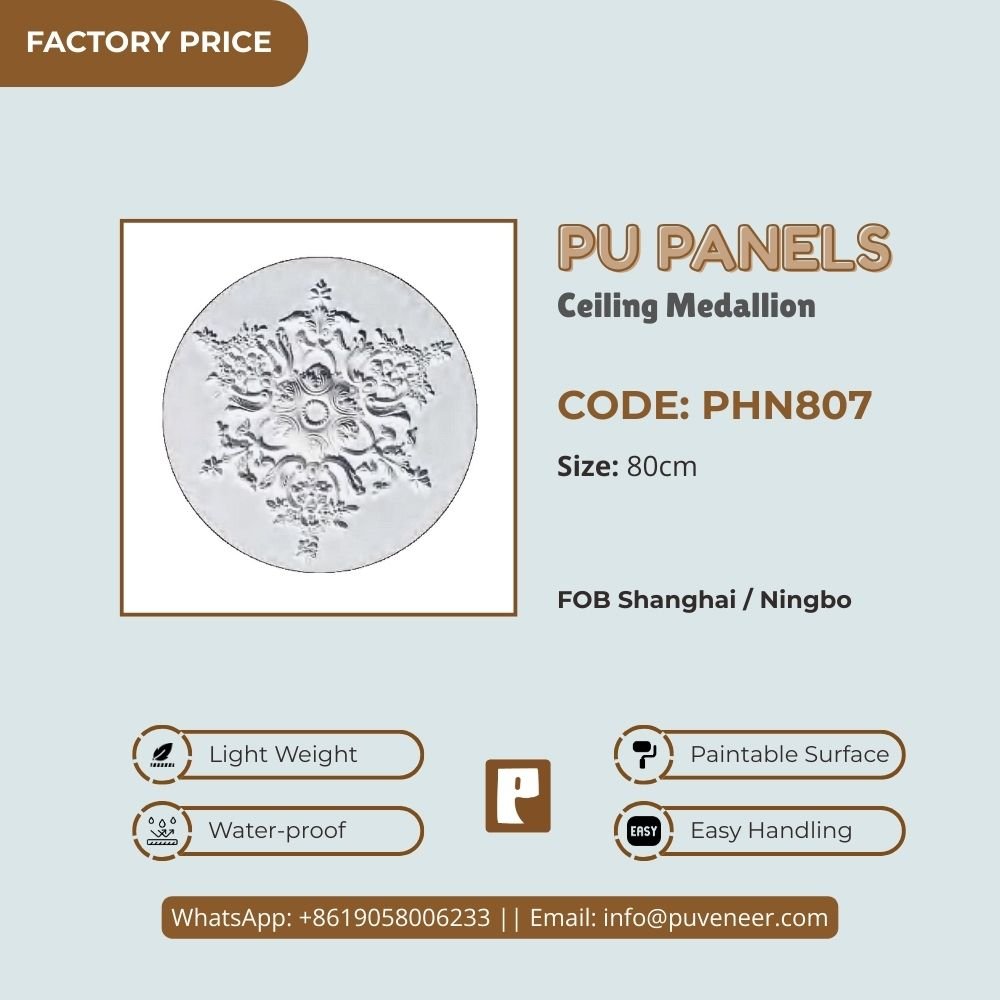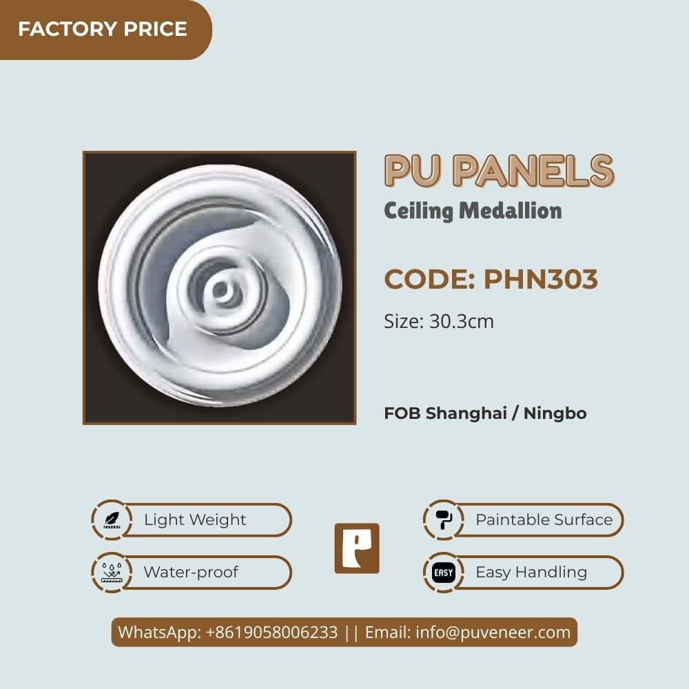 Make your ceiling stand out with our PU Ceiling Medallion. It's made from high-quality polyurethane, which is lightweight but strong. This material offers sharp details and a nice finish without the heaviness of traditional plaster. It resists moisture so that it won't crack or warp over time. Plus, it's easy to install without needing special tools or extra help. Choose this modern design to effortlessly add character to your space.