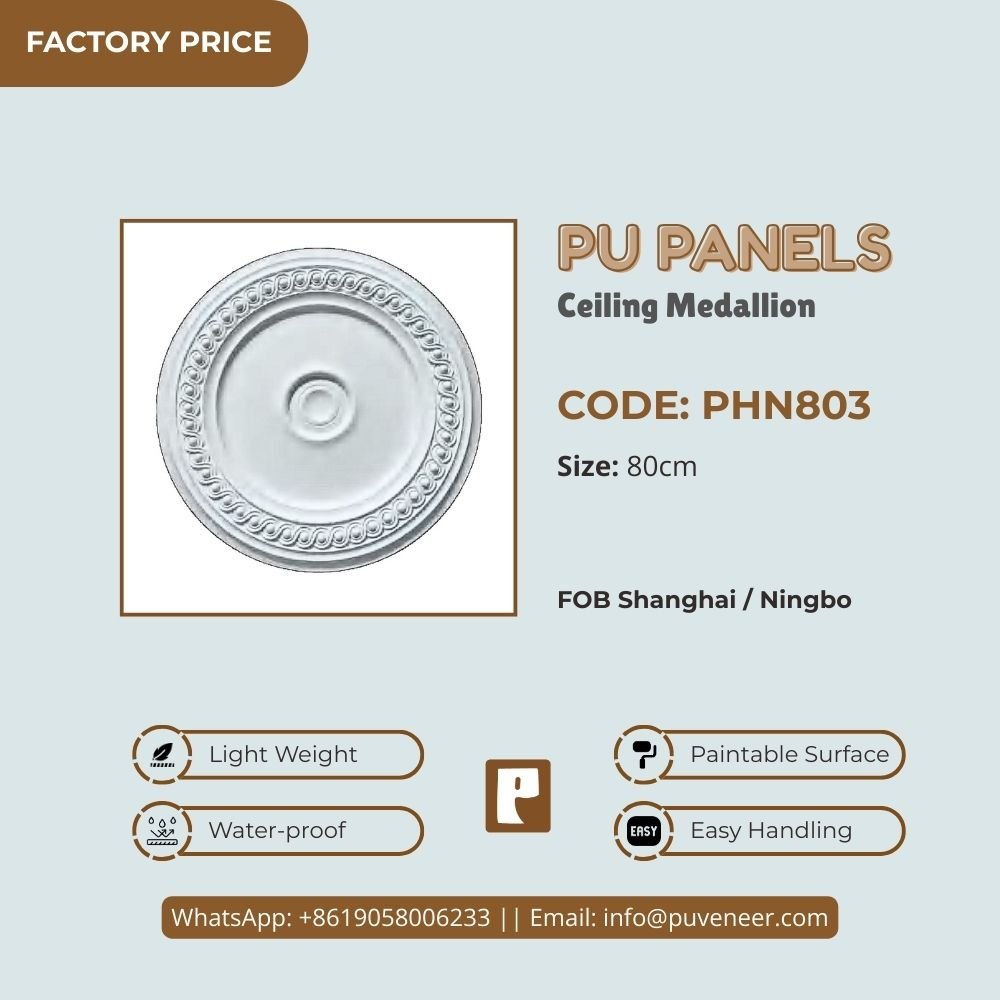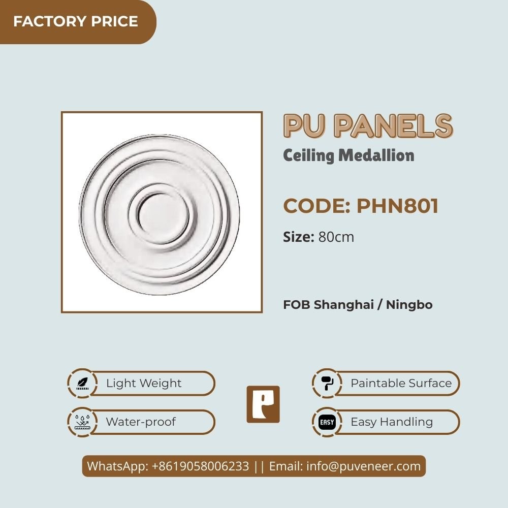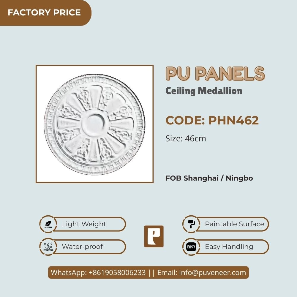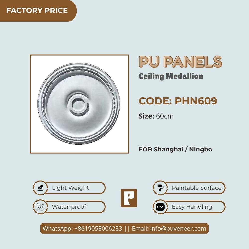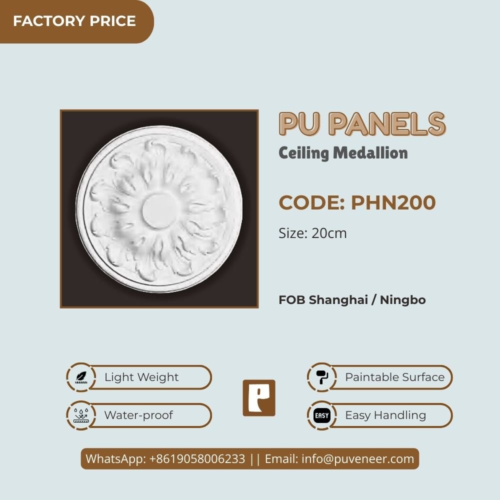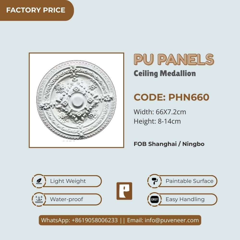 Make your ceiling stand out with our PU Ceiling Medallion. It's made from high-quality polyurethane, which is lightweight but strong. This material offers sharp details and a nice finish without the heaviness of traditional plaster. It resists moisture so that it won't crack or warp over time. Plus, it's easy to install without needing special tools or extra help. Choose this modern design to effortlessly add character to your space.