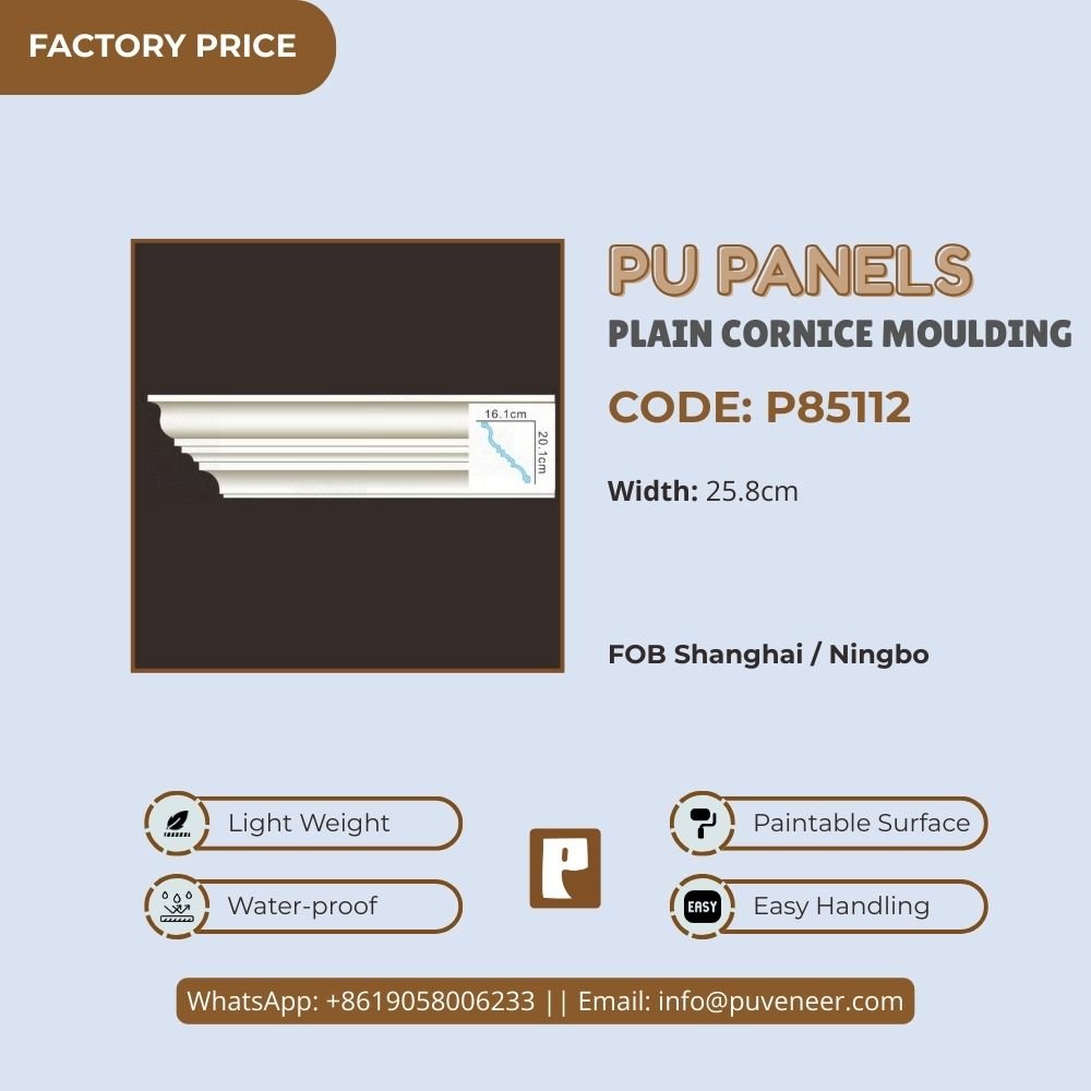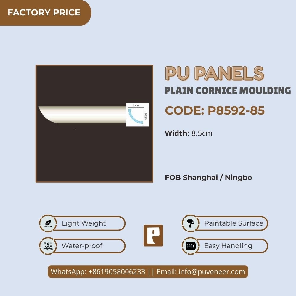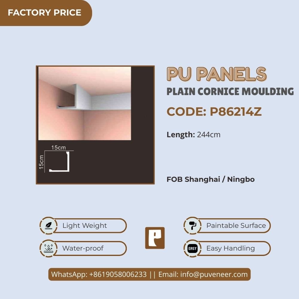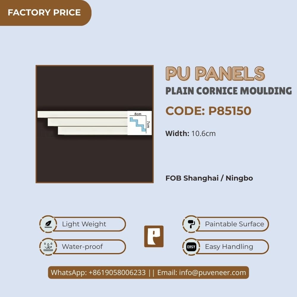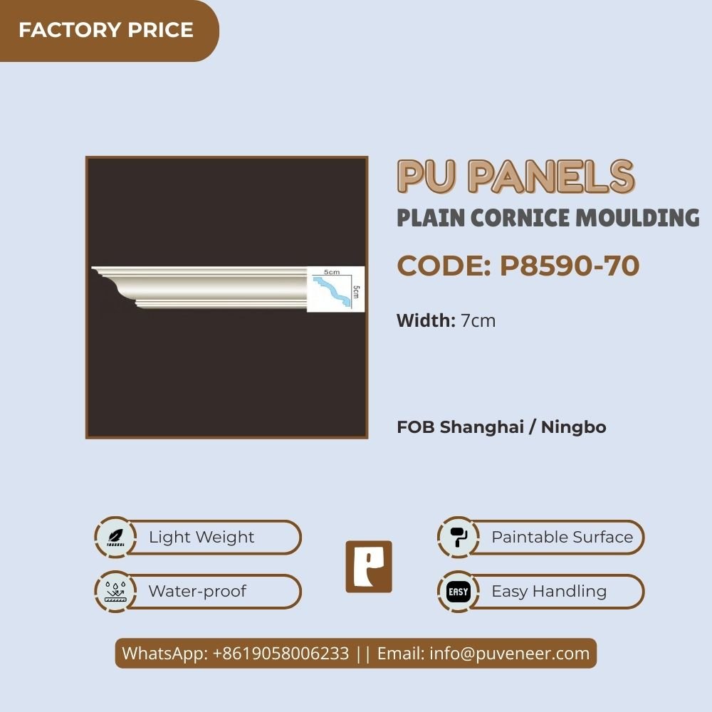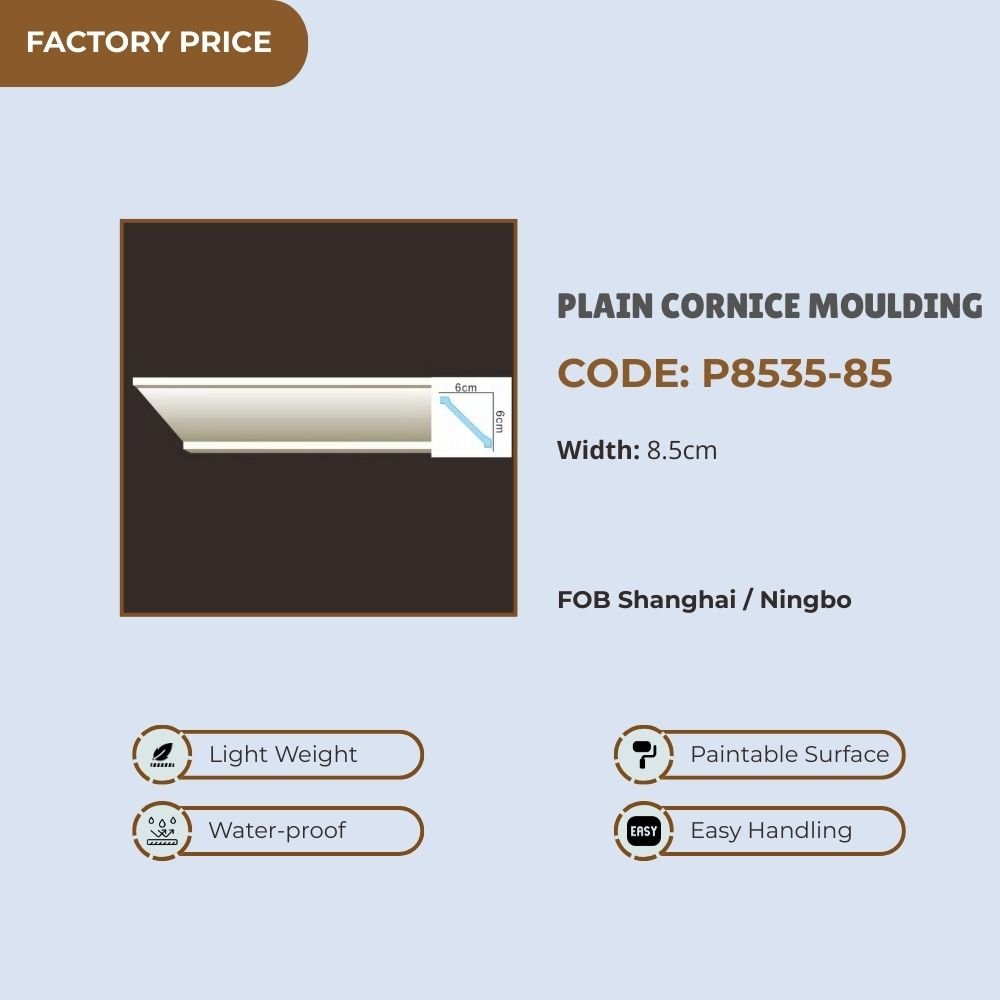 Transform your ceilings and walls with our PU Plain Cornice Moulding. Crafted from high-quality polyurethane, it is lightweight yet durable, delivering crisp, clean lines and a refined finish. Moisture-resistant and easy to install, it requires no specialist tools or extra assistance. Choose this classic yet versatile design to add a polished, professional edge to any interior space.