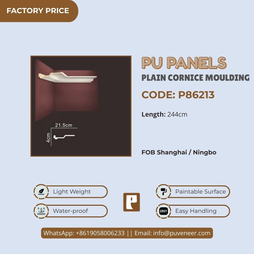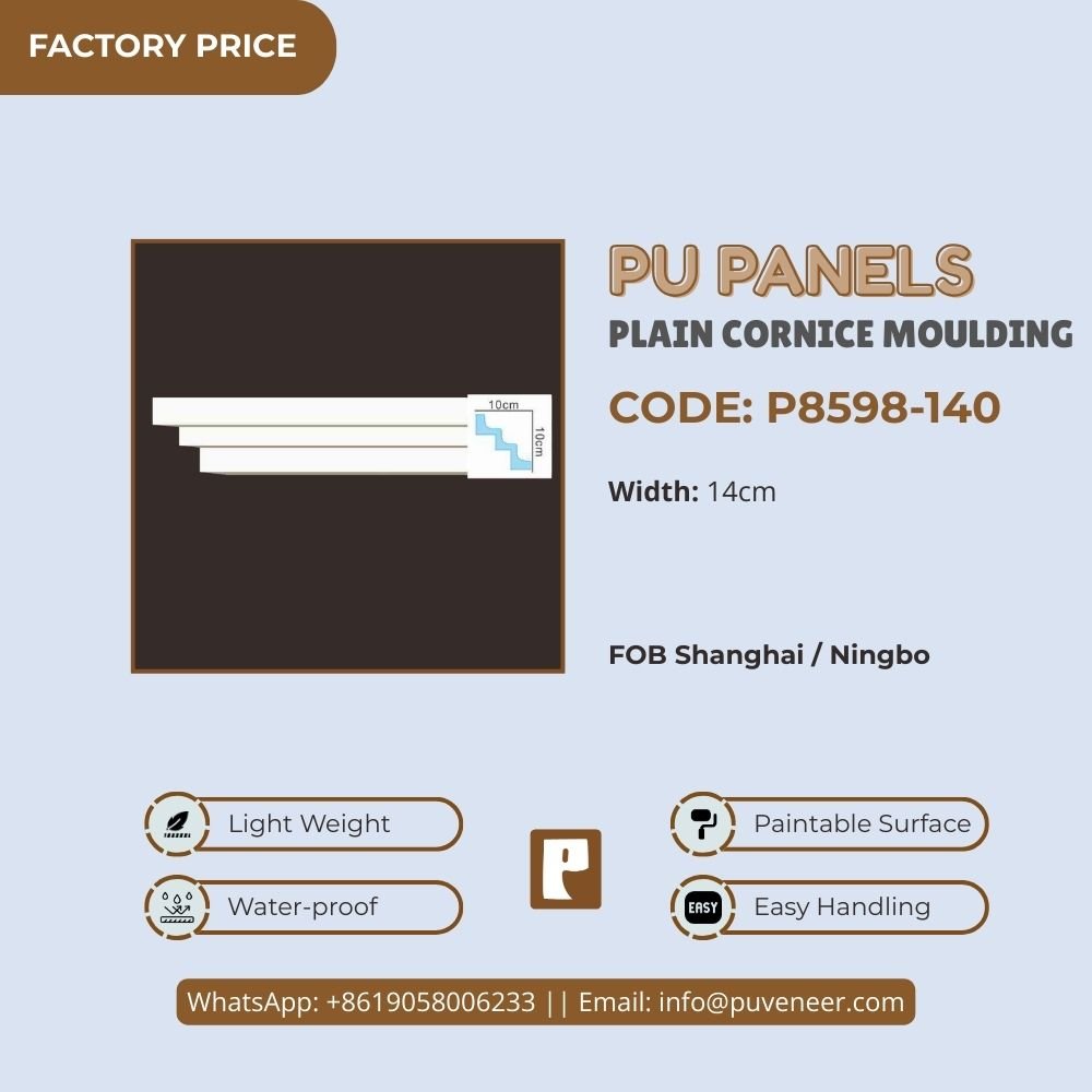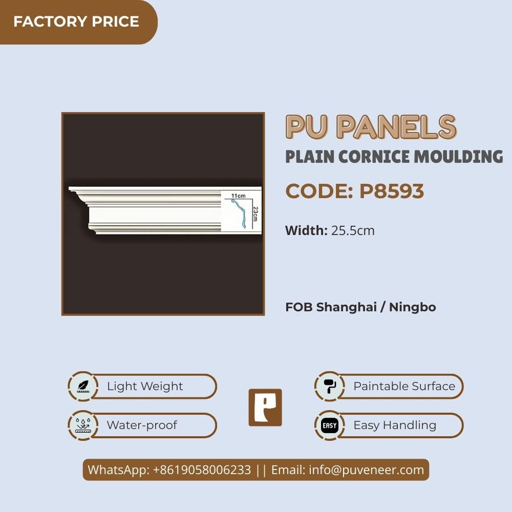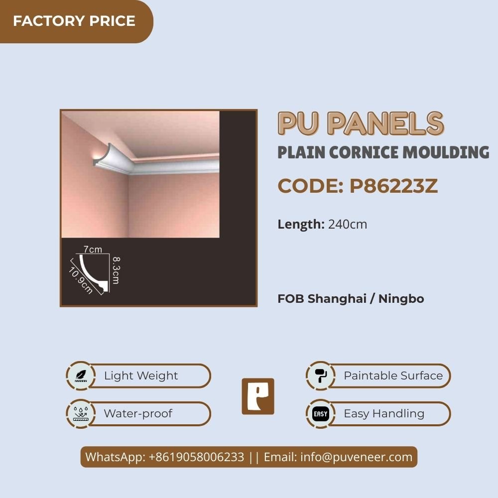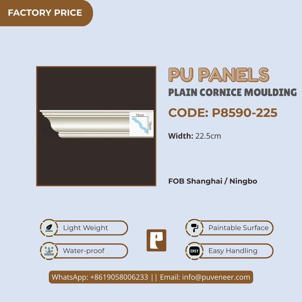 Transform your ceilings and walls with our PU Plain Cornice Moulding. Crafted from high-quality polyurethane, it is lightweight yet durable, delivering crisp, clean lines and a refined finish. Moisture-resistant and easy to install, it requires no specialist tools or extra assistance. Choose this classic yet versatile design to add a polished, professional edge to any interior space.