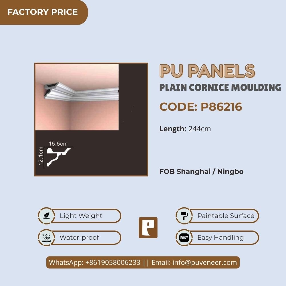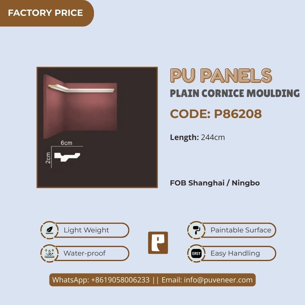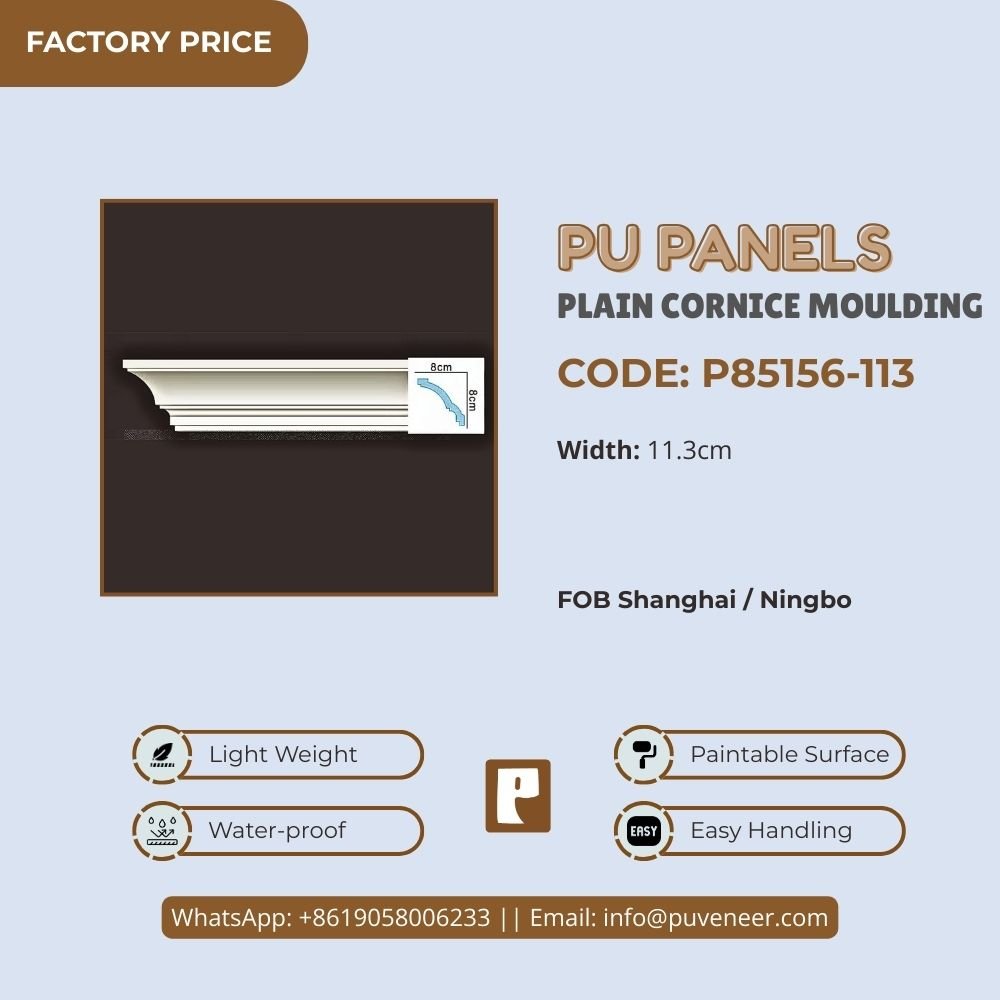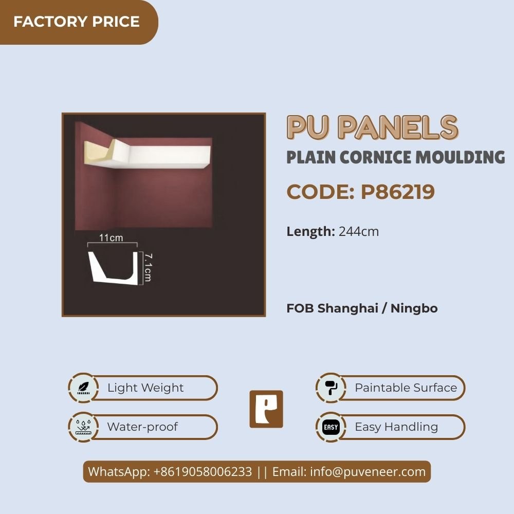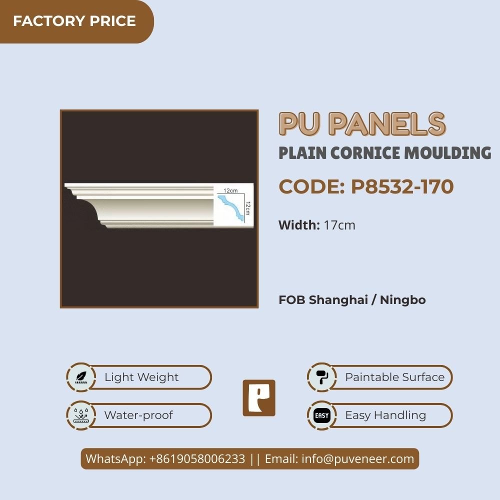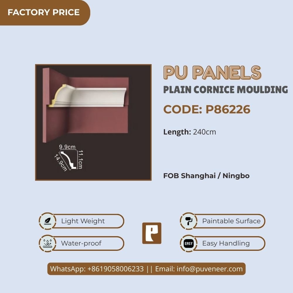 Transform your ceilings and walls with our PU Plain Cornice Moulding. Crafted from high-quality polyurethane, it is lightweight yet durable, delivering crisp, clean lines and a refined finish. Moisture-resistant and easy to install, it requires no specialist tools or extra assistance. Choose this classic yet versatile design to add a polished, professional edge to any interior space.