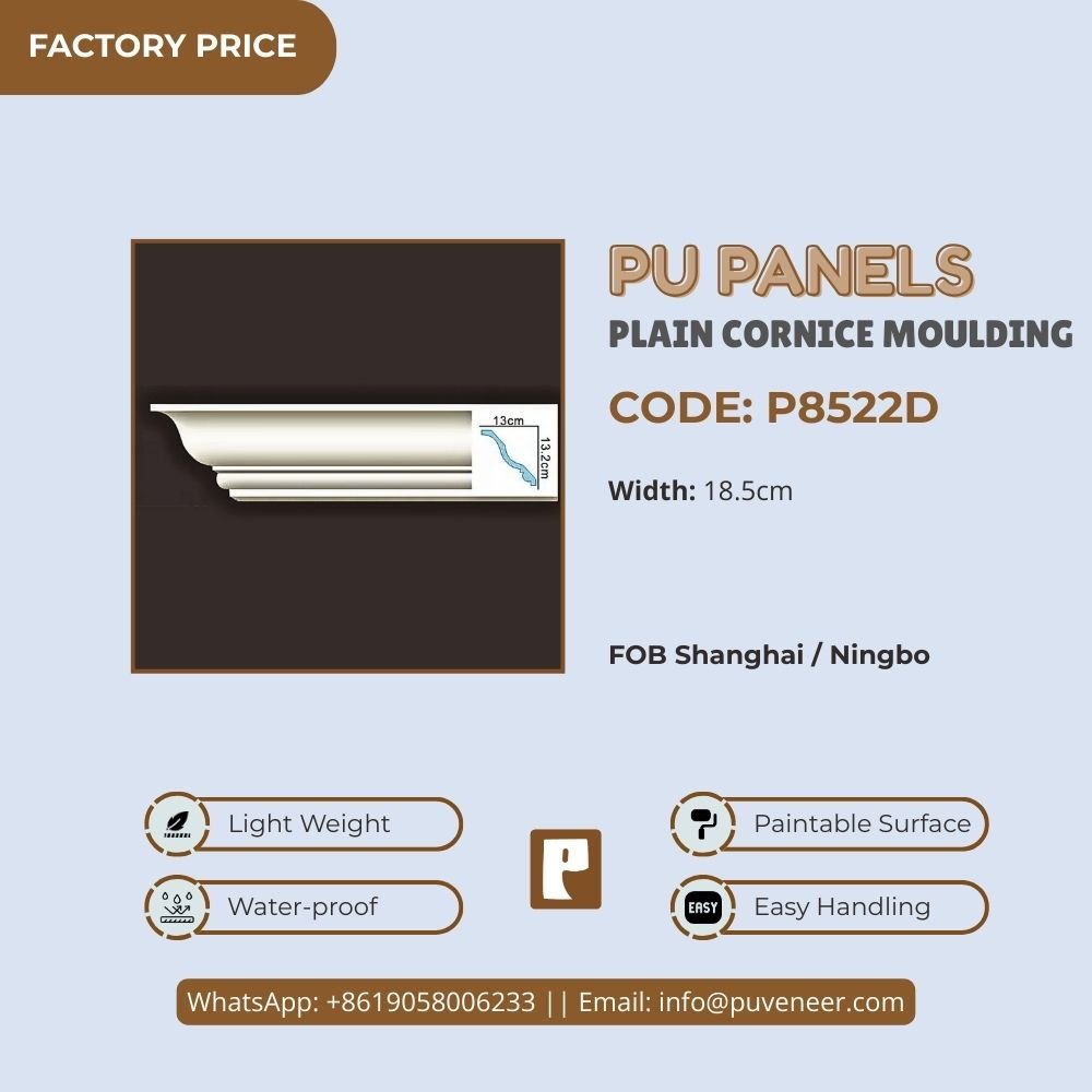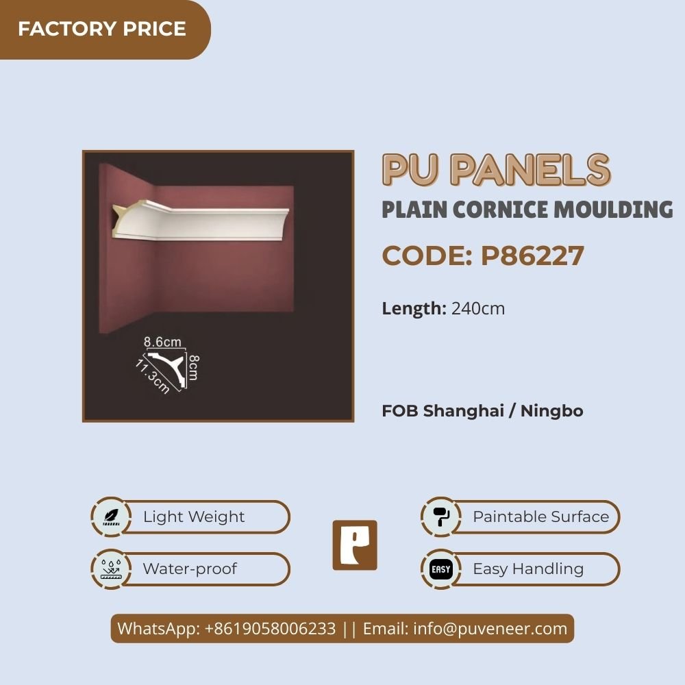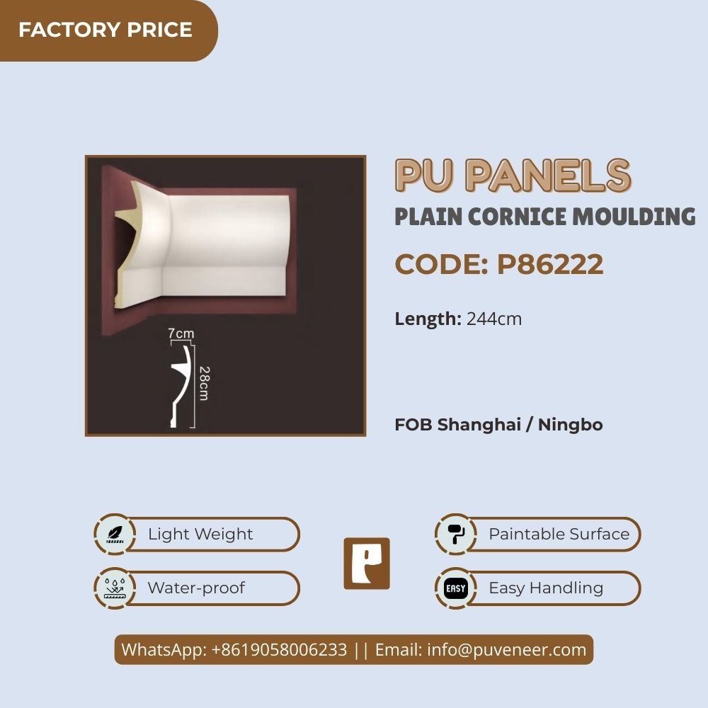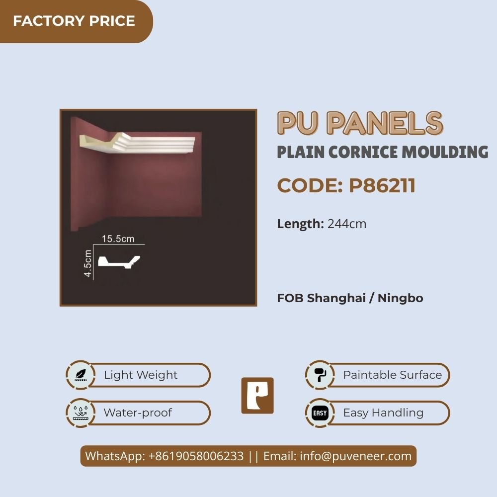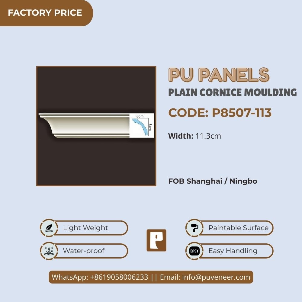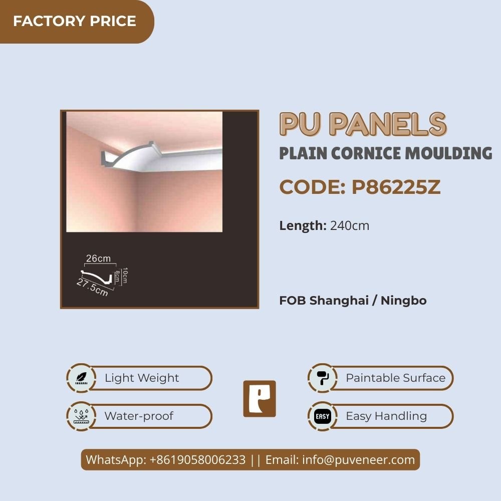 Transform your ceilings and walls with our PU Plain Cornice Moulding. Crafted from high-quality polyurethane, it is lightweight yet durable, delivering crisp, clean lines and a refined finish. Moisture-resistant and easy to install, it requires no specialist tools or extra assistance. Choose this classic yet versatile design to add a polished, professional edge to any interior space.